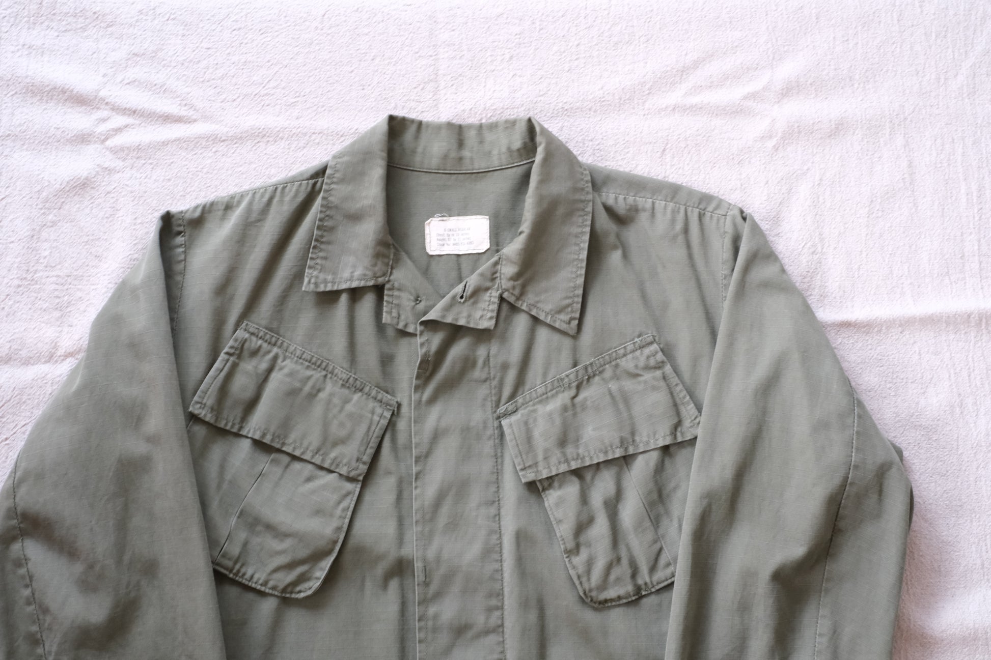 1960年代US.ARMYのCOMBAT TROPICAL COAT、通称”Jungle Fatigue Jacket” です。4thタイプのコットンポプリン素材のリップストップ仕様です。全体のフェード感が良い雰囲気です。特に目立つ傷や汚れなどはありません。