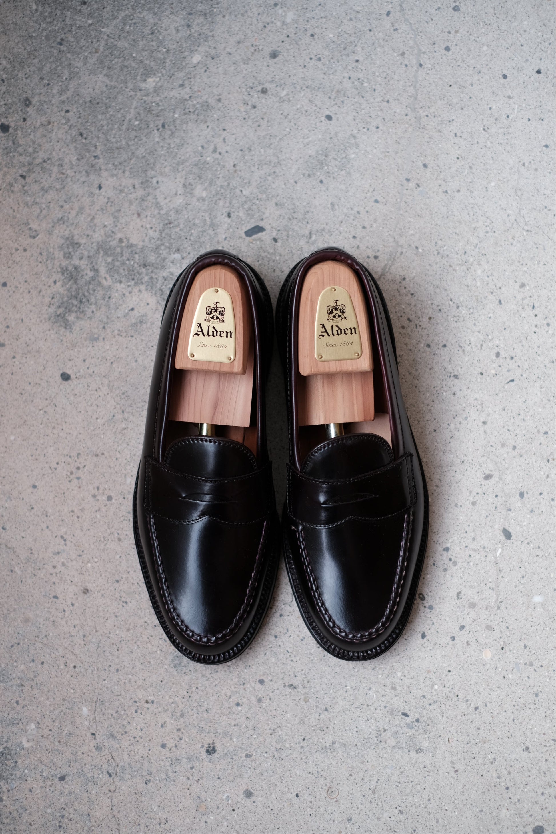 アメリカンクラシックのアイコン、ペニーローファー。 アメリカ本国仕様の日本未発売モデルです。つま先のスキンステッチは、Aldenの工場の中でも3人しかいないと言われる熟練職人が1日数足しか制作できないと言われており、革の表面だけをすくい縫いする、極めて高度な手縫いの技法です。