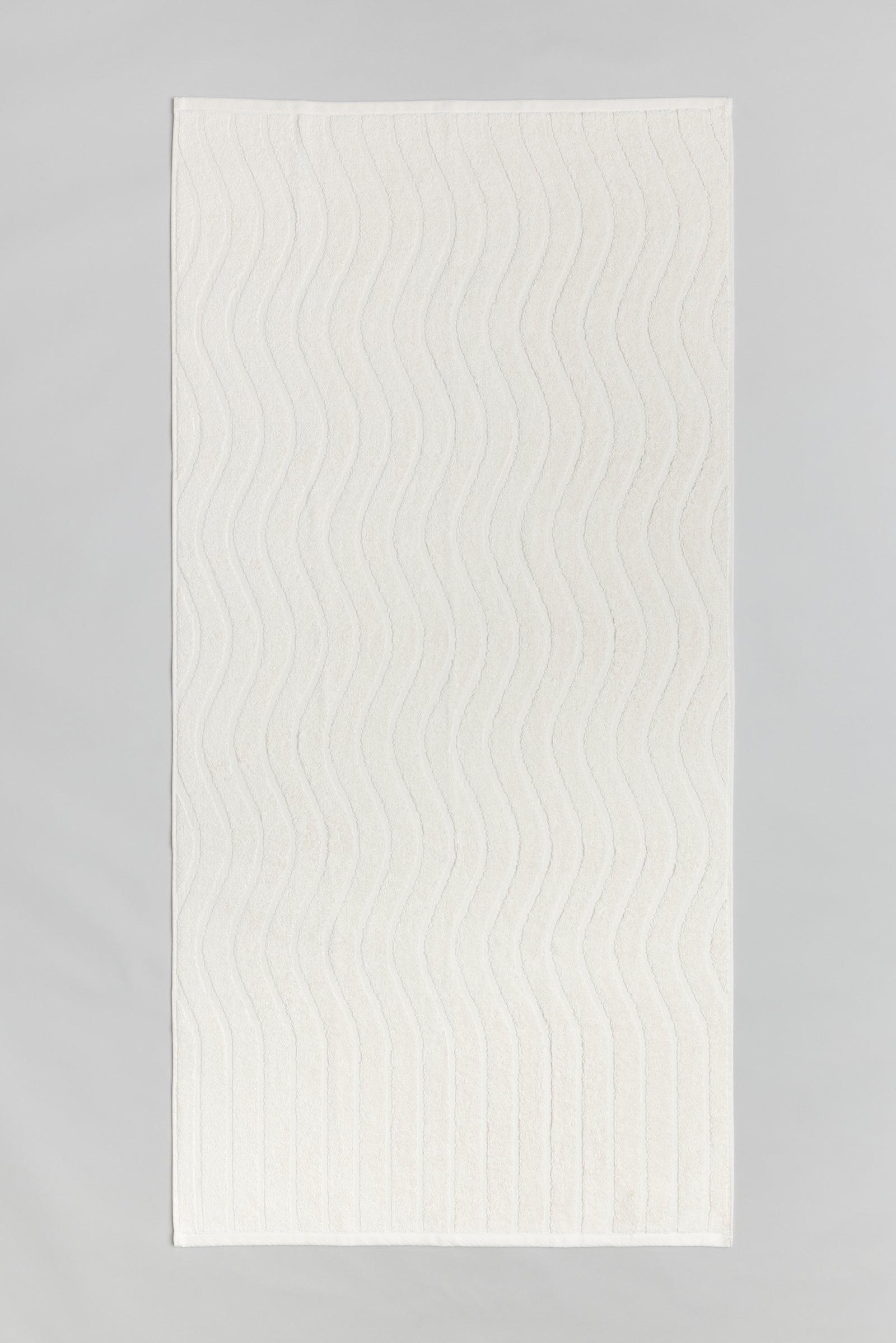 贅沢な厚みと柔らかさが魅力のオーガニックコットン100%のバスタオル。水滴の反響にインスピレーションを得た落ち着きのある模様です。